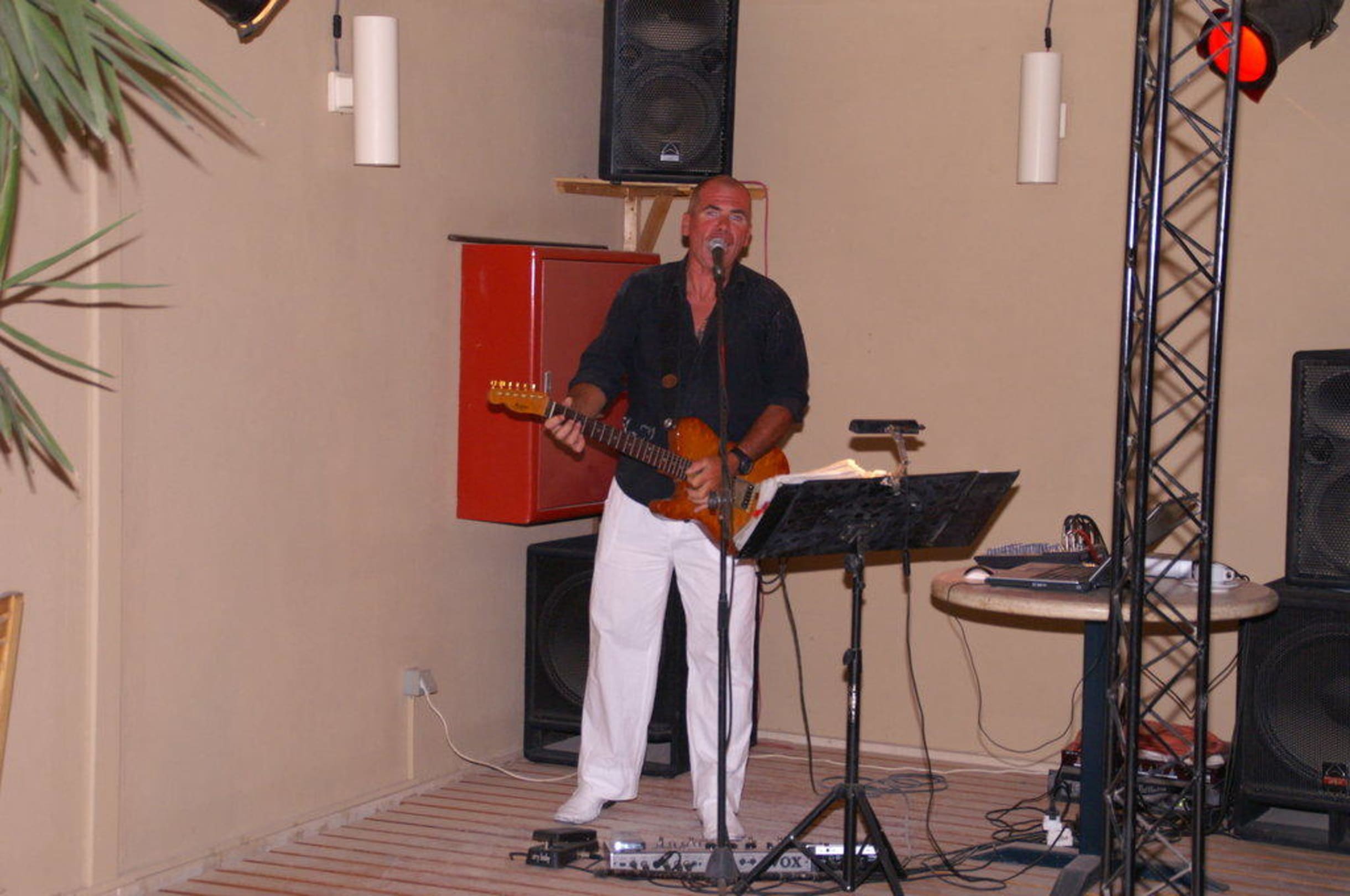 Unsere abendliche Stimmungskanone auf der Sonenterasse. Er spielte immer Abends, von 19 bis 23 Uhr