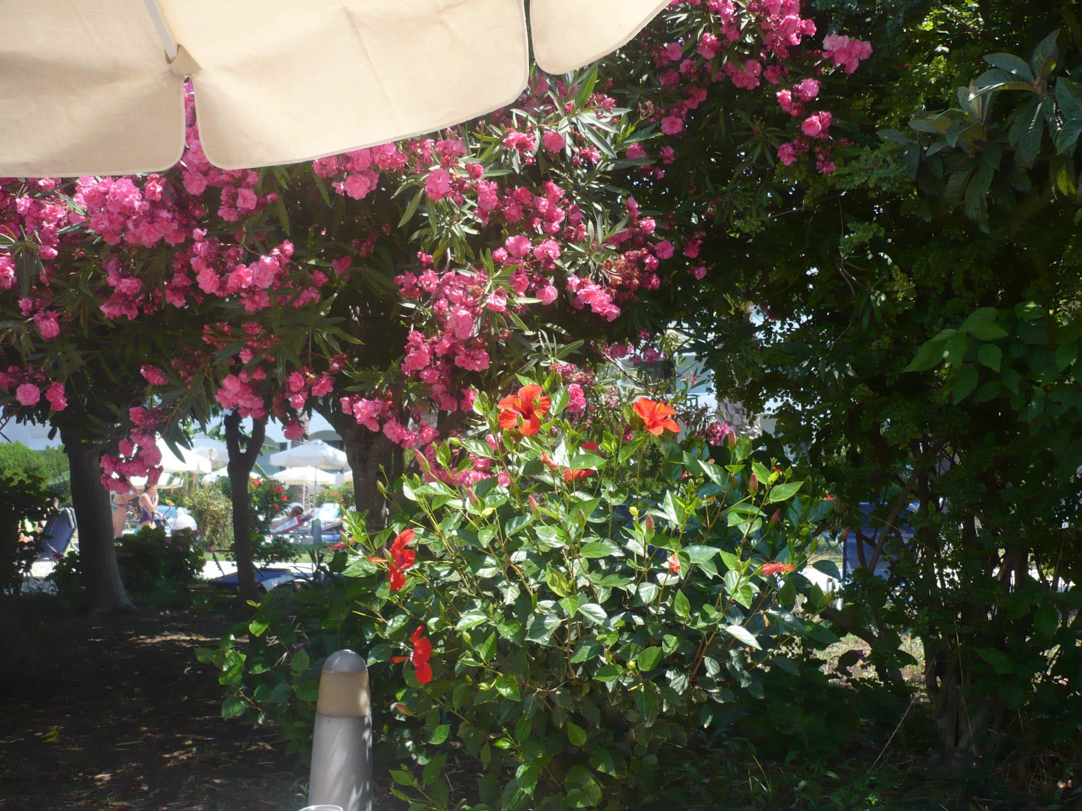 Alles schön farbig durch Sträucher und Pflanzen
