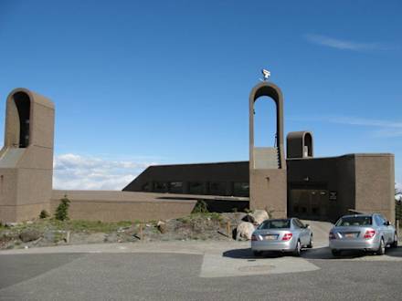 Timberline Lodge, Oregon: in diesem Gebäude, das gegenüber der Lodge liegt, befindet sich u.a. die Skischule, ein Souvenirgeschäft und ein Restaurant