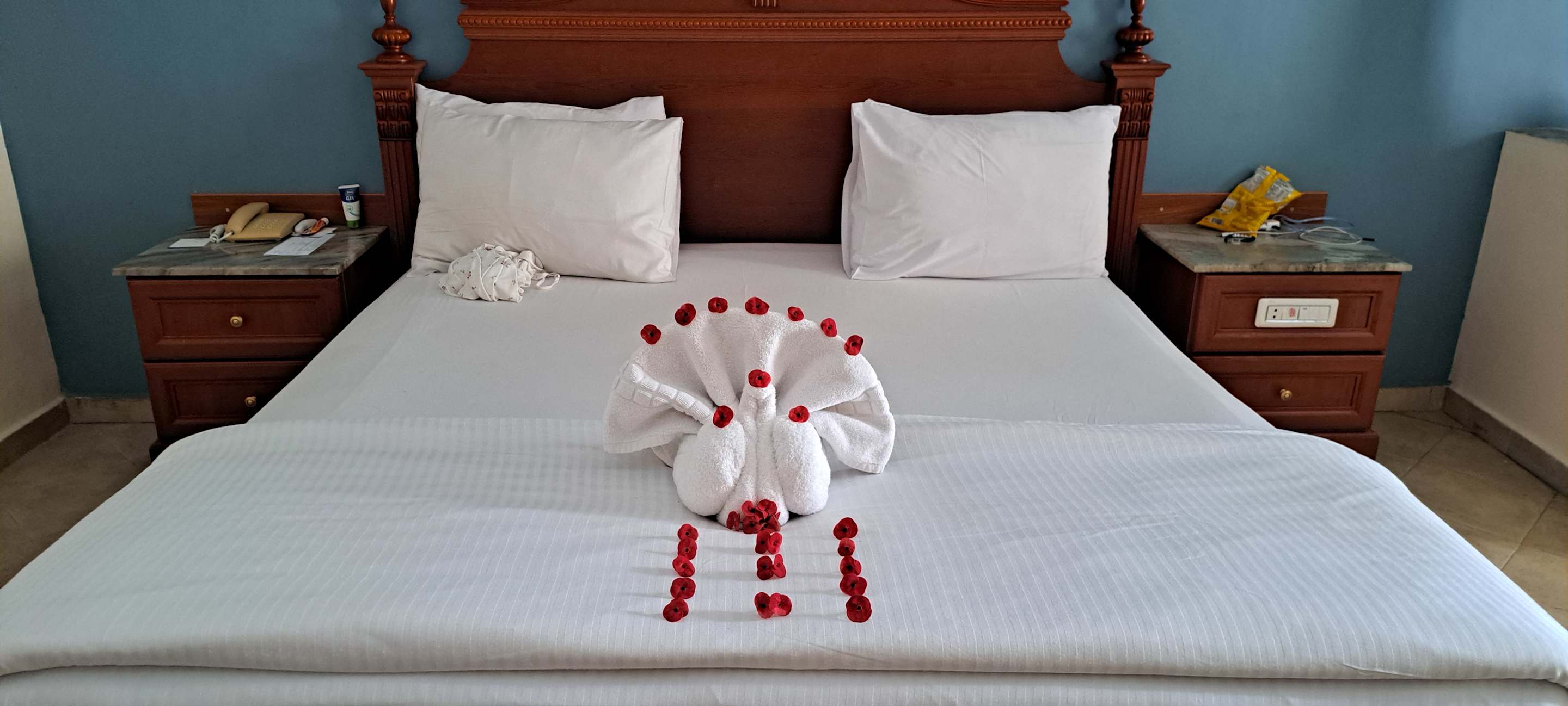 Sehr großes Bett. Wir sind nur 160cm Breite gewöhnt. Auch die Zudecke für 2 Personen war so riesig, dass nicht einer ohne da lag, wenn der andere sich umdrehte.