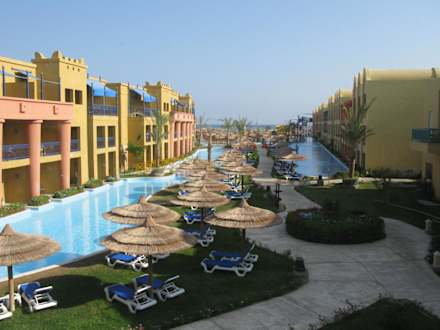 Fast alle untenliegenden Zimmer haben direkten Zutritt zum Wasser Die Gebäude links gehören zum Titanic Palace rechts zum Titanic Beach Resort.