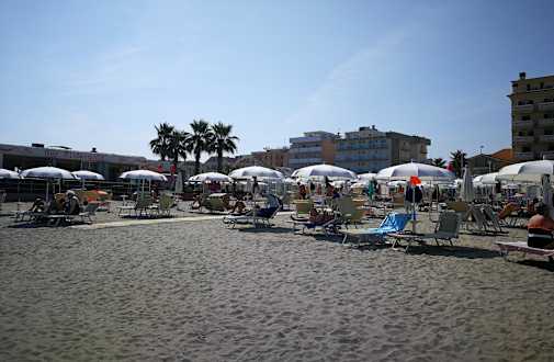 Eines der vielen Bagnos in unmittelbarer Nähe inkl. Strandrestaurant