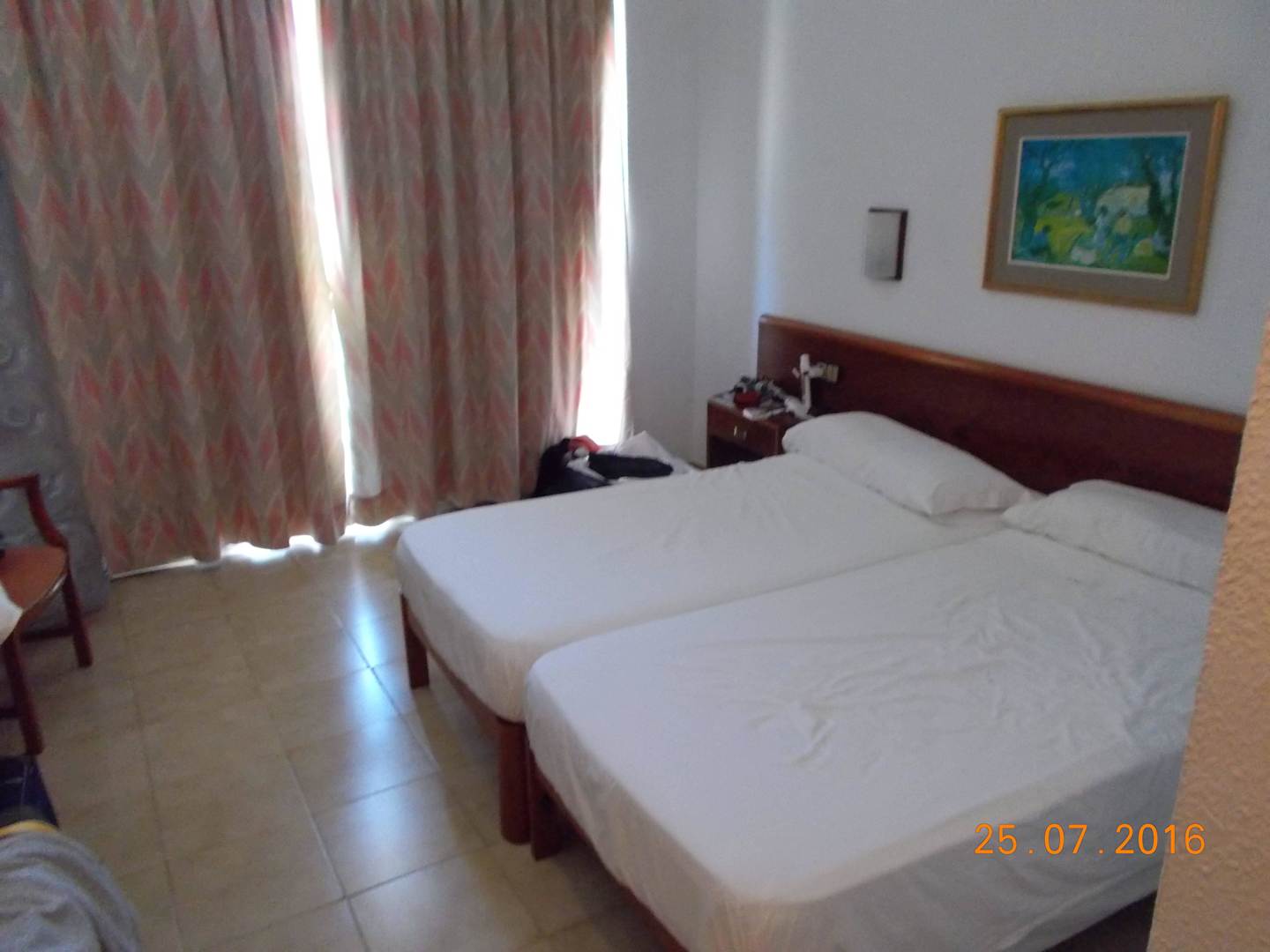 Das war unser Zimmer. Angeblich. lt. Aussage Rezeption gibt es bei DZ-Buchung kein Doppelbett in Spanien.... 3 Straßen weiter inunserem bis Dato Hotel schon...................