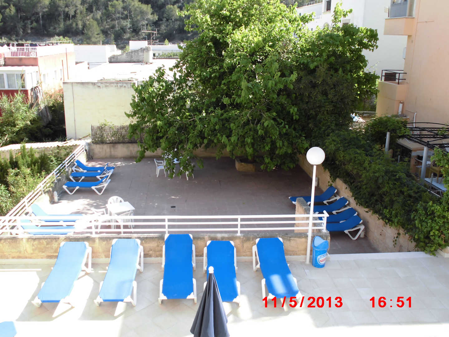 Blick vom Balkon auf die Poolanlage