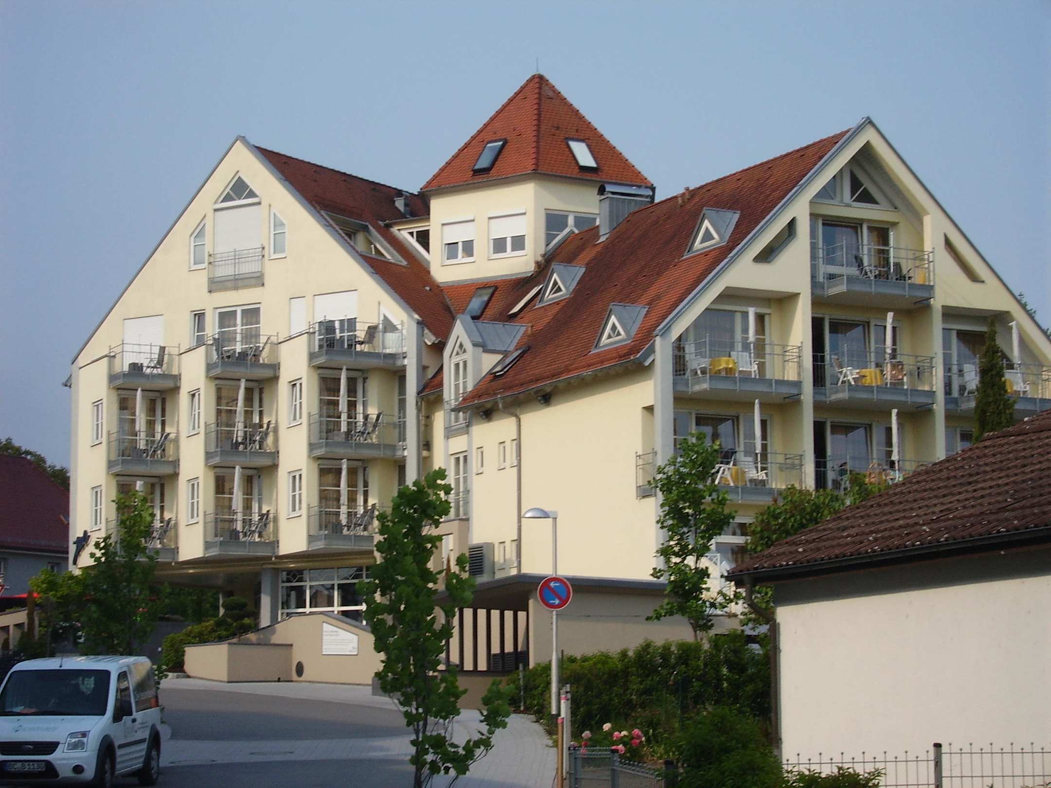 So sieht man das Hotel vom Bodensee aus