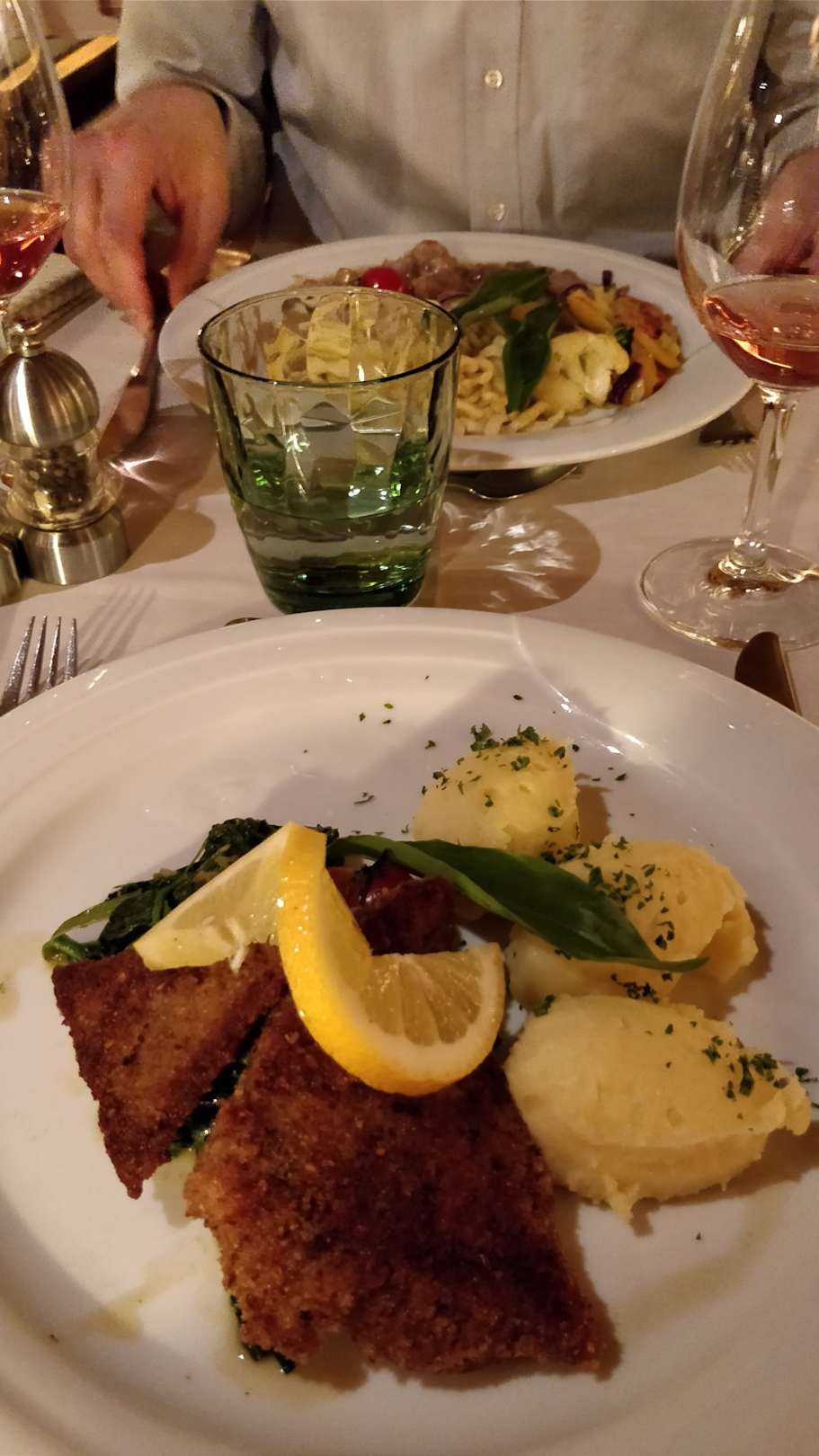 Paniertes Fischfilet mit Beilagen