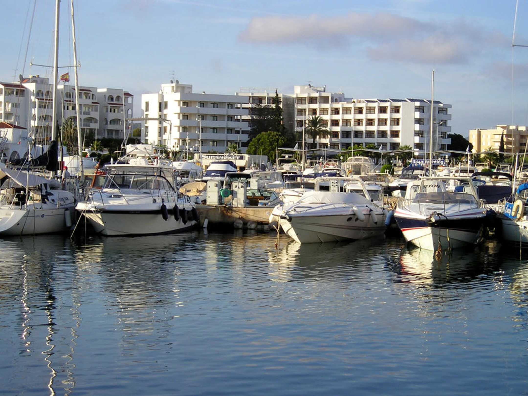 Das Tres Torres von der äußeren Ecke des Yachthafens gesehen