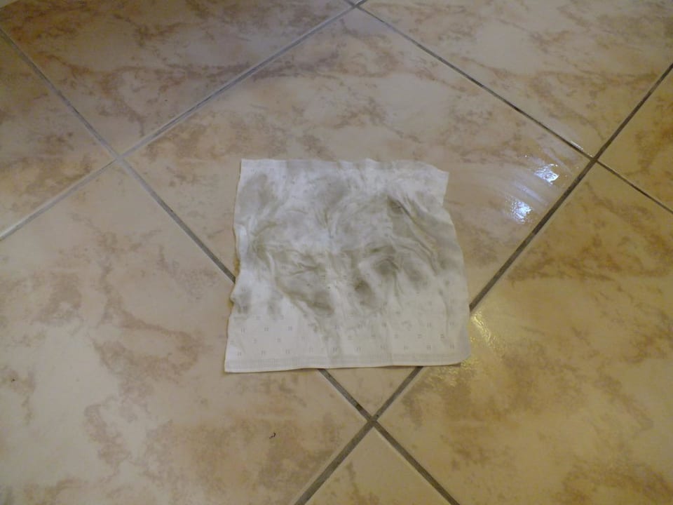 Test nach der Zimmerreinigung im BadMit einem Tuch einfach mal über den Boden nachdem das Zimmer gereinigt worden wurde.