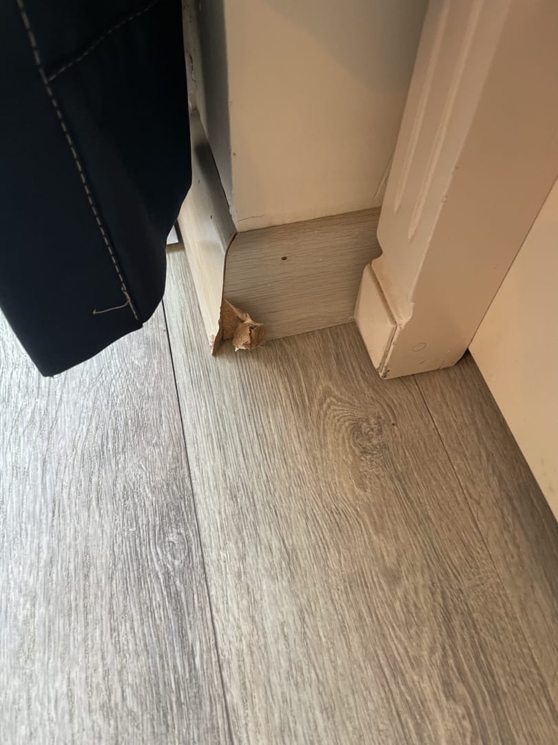 Ist direkt an der Balkon Tür und daher sofort sichtbar. Ich verstehe nicht, wie man solche Sachen nicht beheben kann. Ein kleines Kind könnte sich sofort dran verletzten