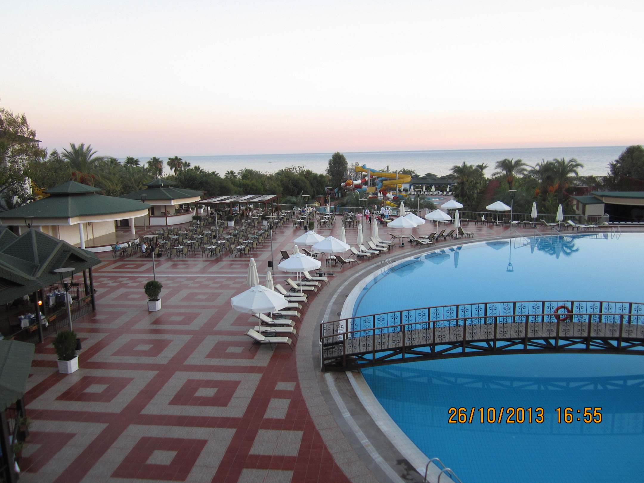 Blick auf Pool vom Balkon