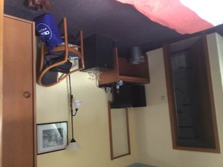 ZimmerDer Schreibtisch….. nicht als dieser nutzbar. Wir brauchten diesen auch nicht. Insgesamt ziemlich altes Mobiliar.