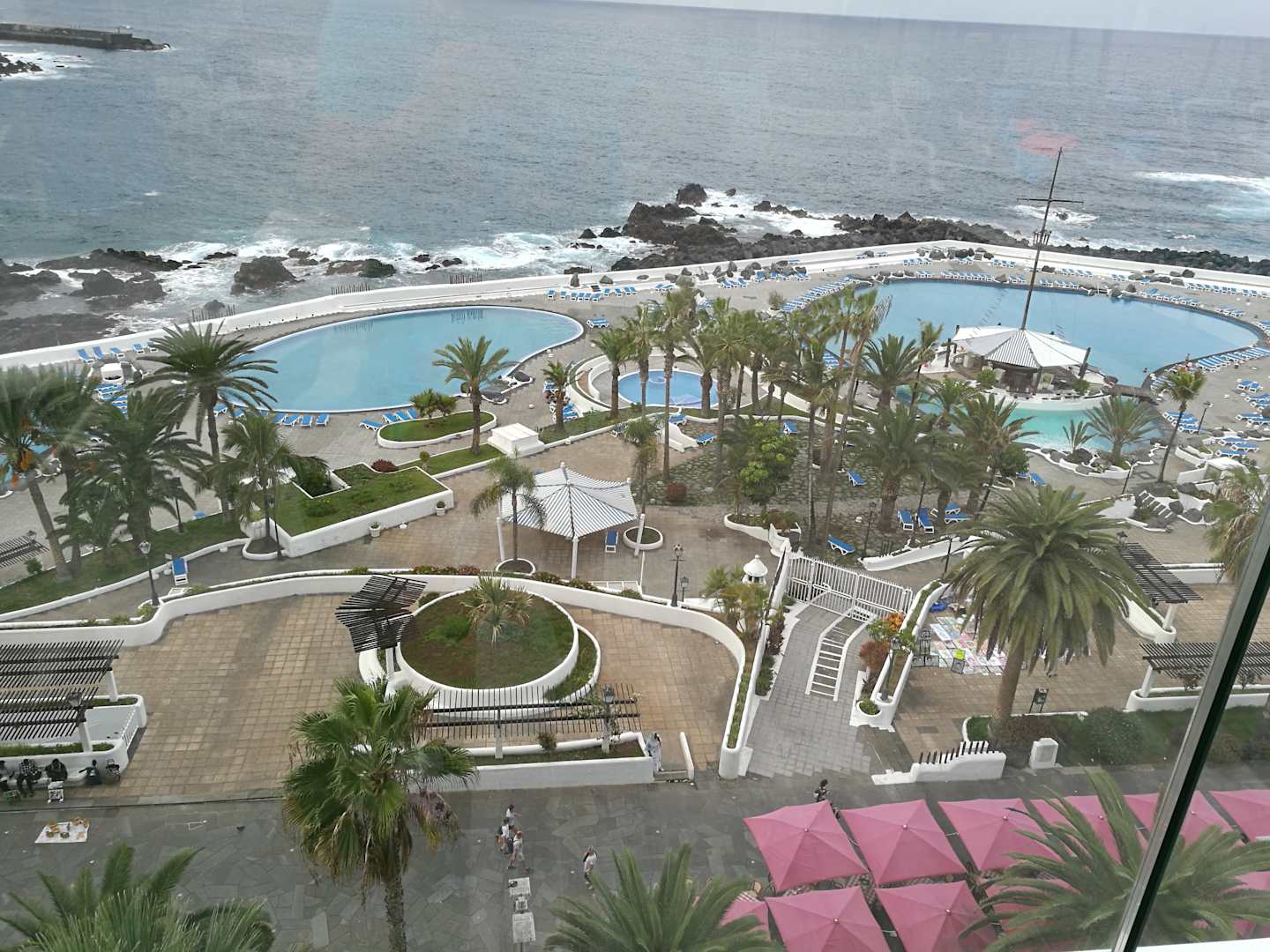 Blick vom Dach auf die Badelandschaft