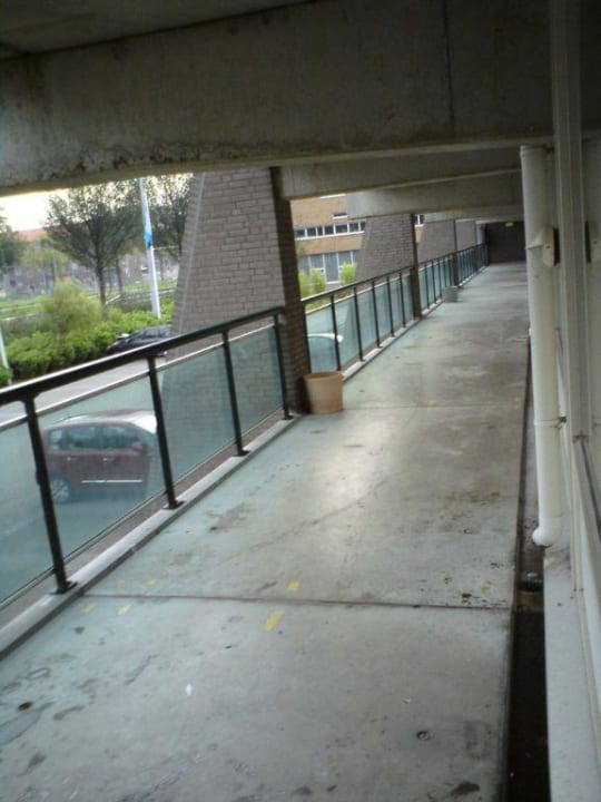 Der Balkon erstreckt sich auf der gesamten Etage. keine Abtrennung zu den Nachbarn. Dachentwässerung wird über den Balkon geführt.Außerdem sehr Dreckig