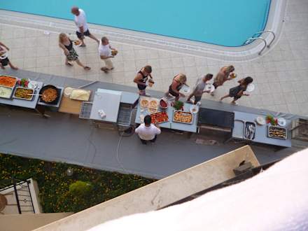 Blick von unserem Balkon runter auf das Buffet