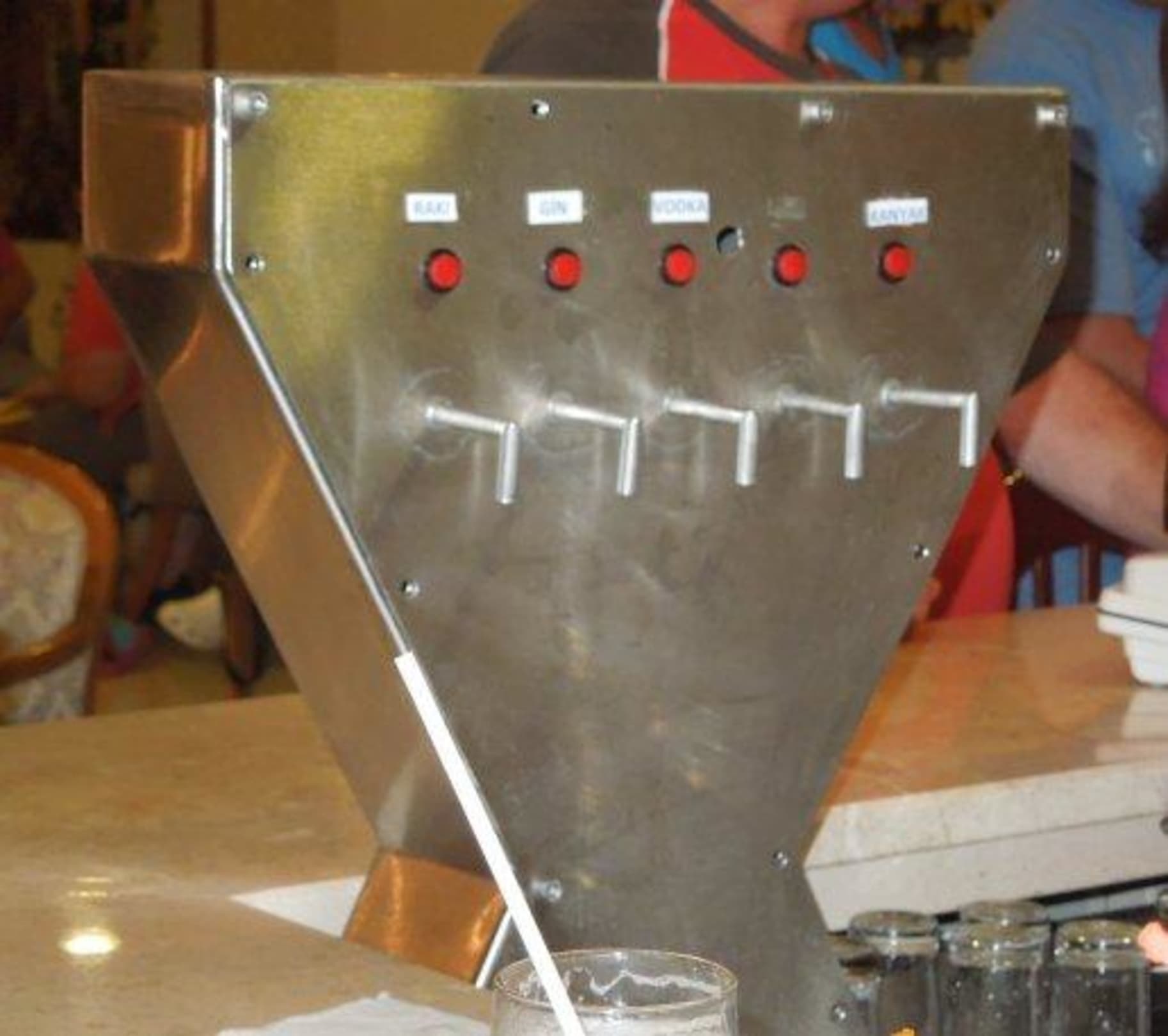 Der Getränkeautomatsieht aus wie Marke Eigenbau, die Getränkeautomaten an der Bar für Hochprozentiges und Saft