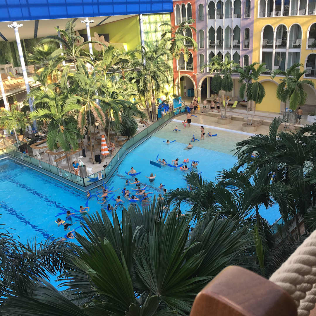 Blick vom Zimmer in die Therme