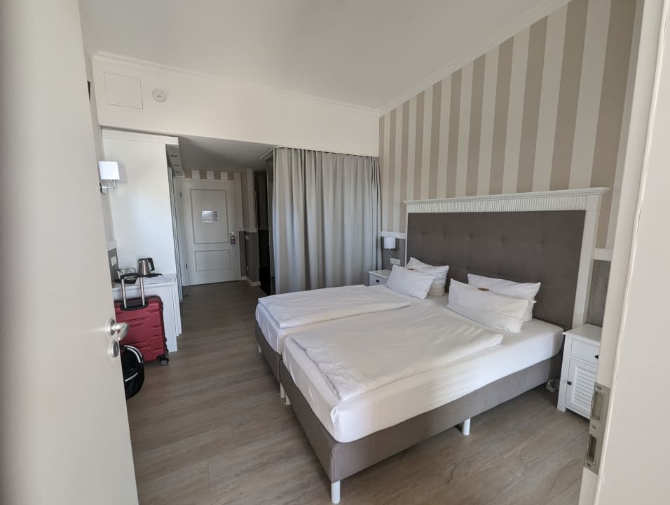 Zimmer...hinter dem Vorhang ist die Dusche (hinter Glaswand) , Waschbecken und WC auch nur hinter Milchglasschiebetür