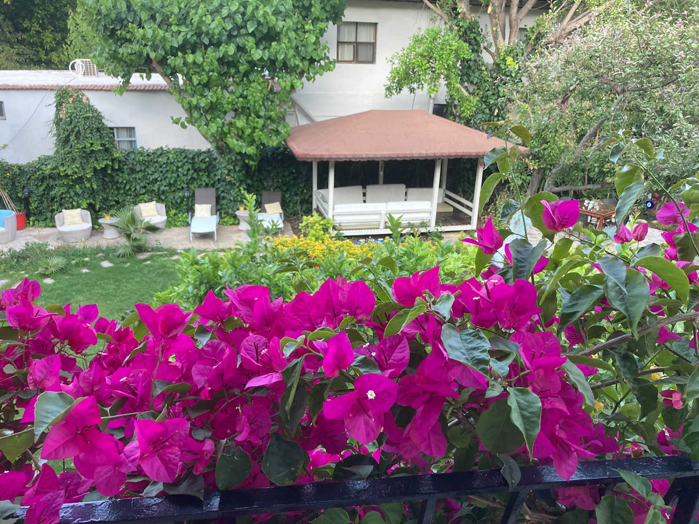 Blick von Zimmer 5 auf den Garten