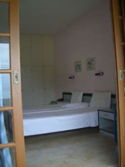 Blick vom Balkon ins Zimmer 110