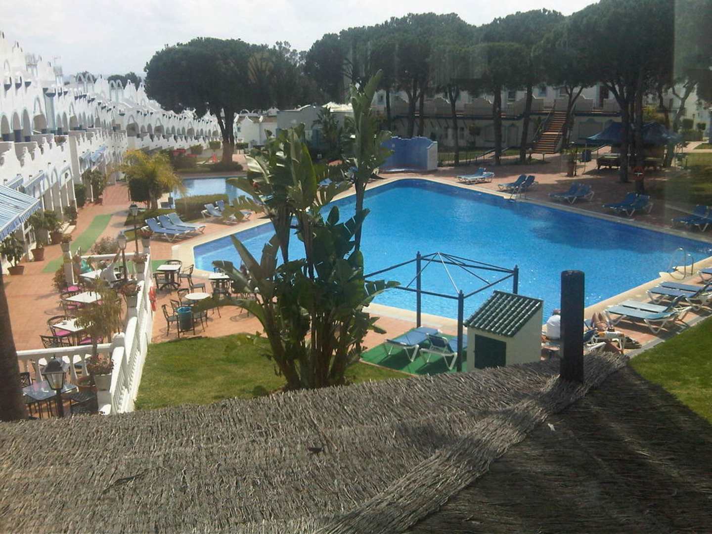 Blick von der Lobby auf die Poolanlage