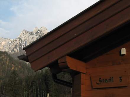 Die Ansicht auf den Stadl mit Berg im Hintergrund