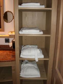 Waschbereich mit Handtüchern und Bademänteln