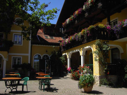 Gastgarten des Landhotel Waldmühle im Salzkammergut