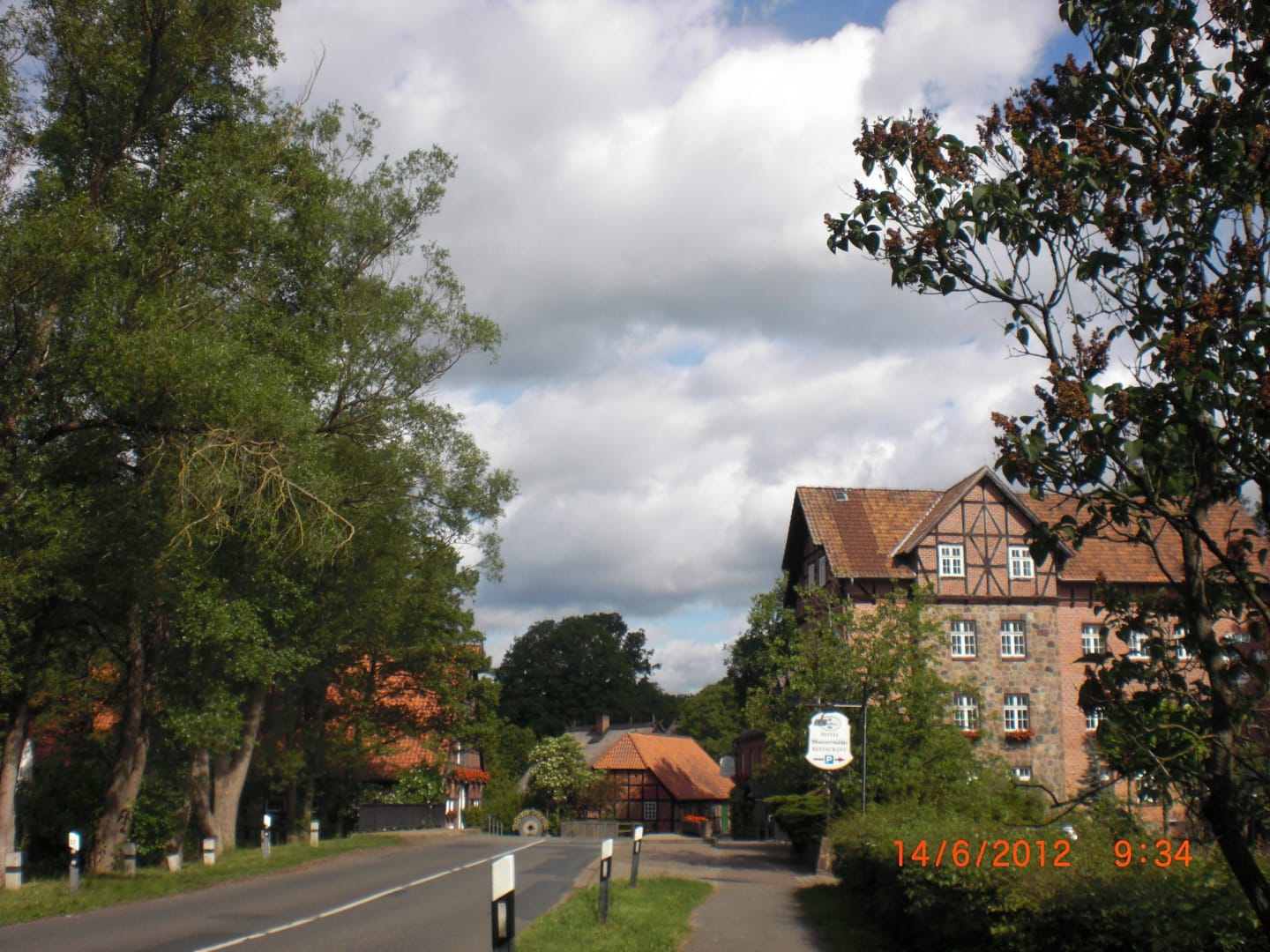 Straße zwischen Restautrant und Mühle