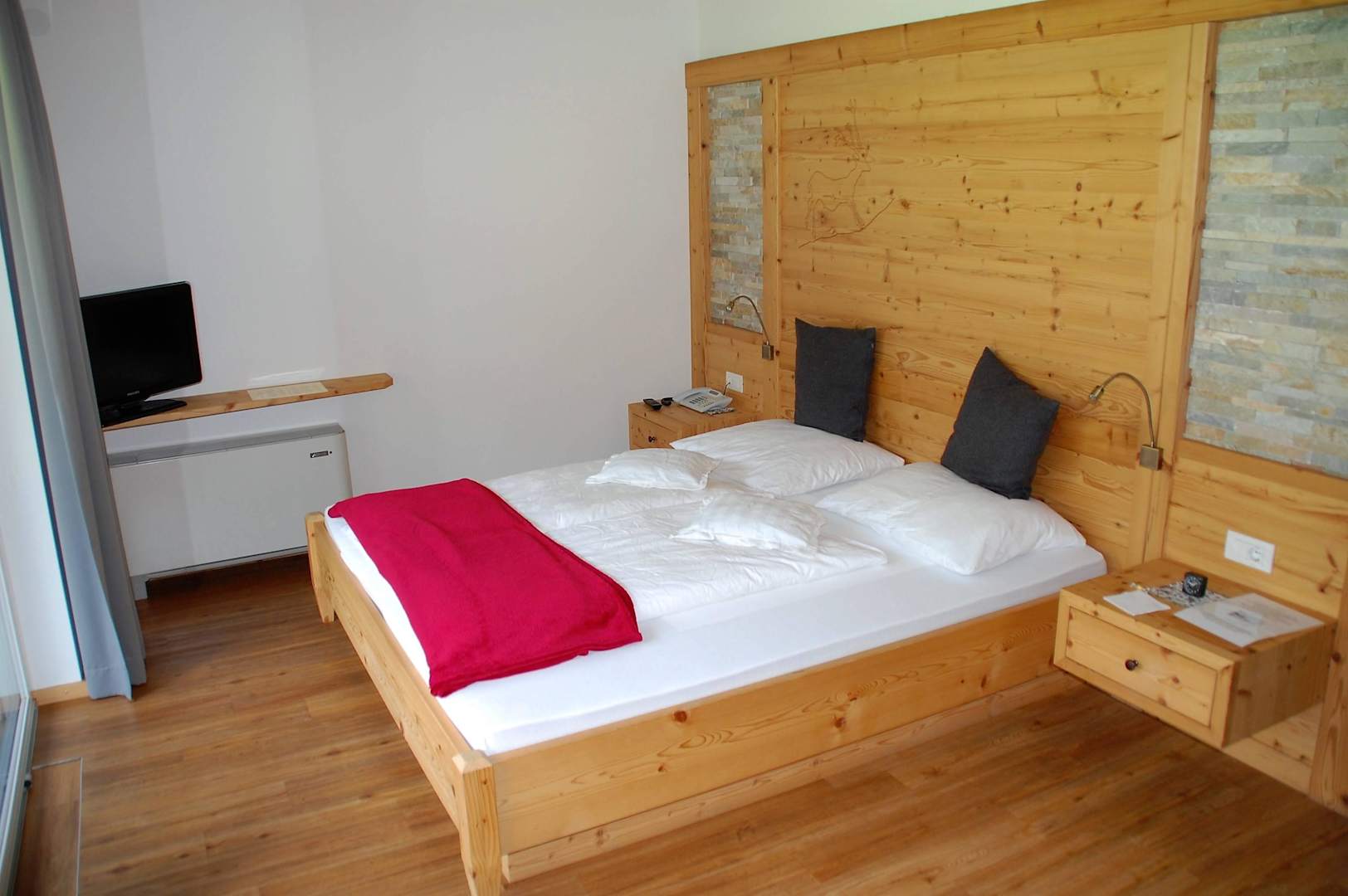Doppelbett und Holzfußboden