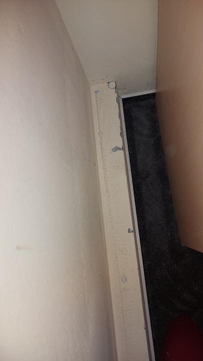 Staub und Dreck zwischen Tisch und Wand.