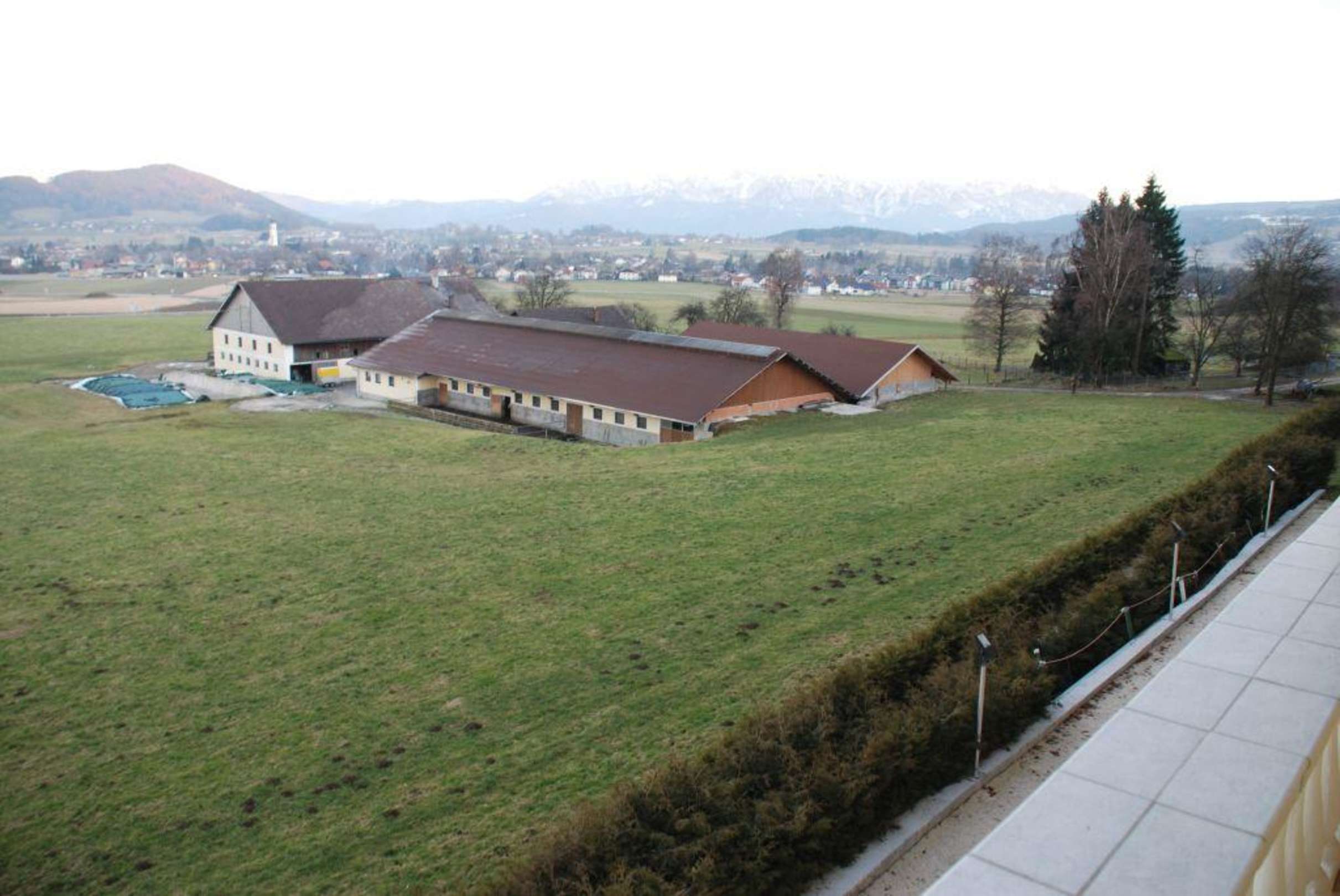 Blick aus dem Hotelzimmer auf den Kuhstall