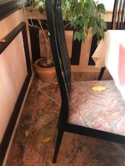 SonstigesFrühstücksraum - hier lagen 4 Tage lang auf dem Stuhl und Boden Blätter eines Ficus - es wurde also weder gekehrt noch gewischt - 4 Tage lang