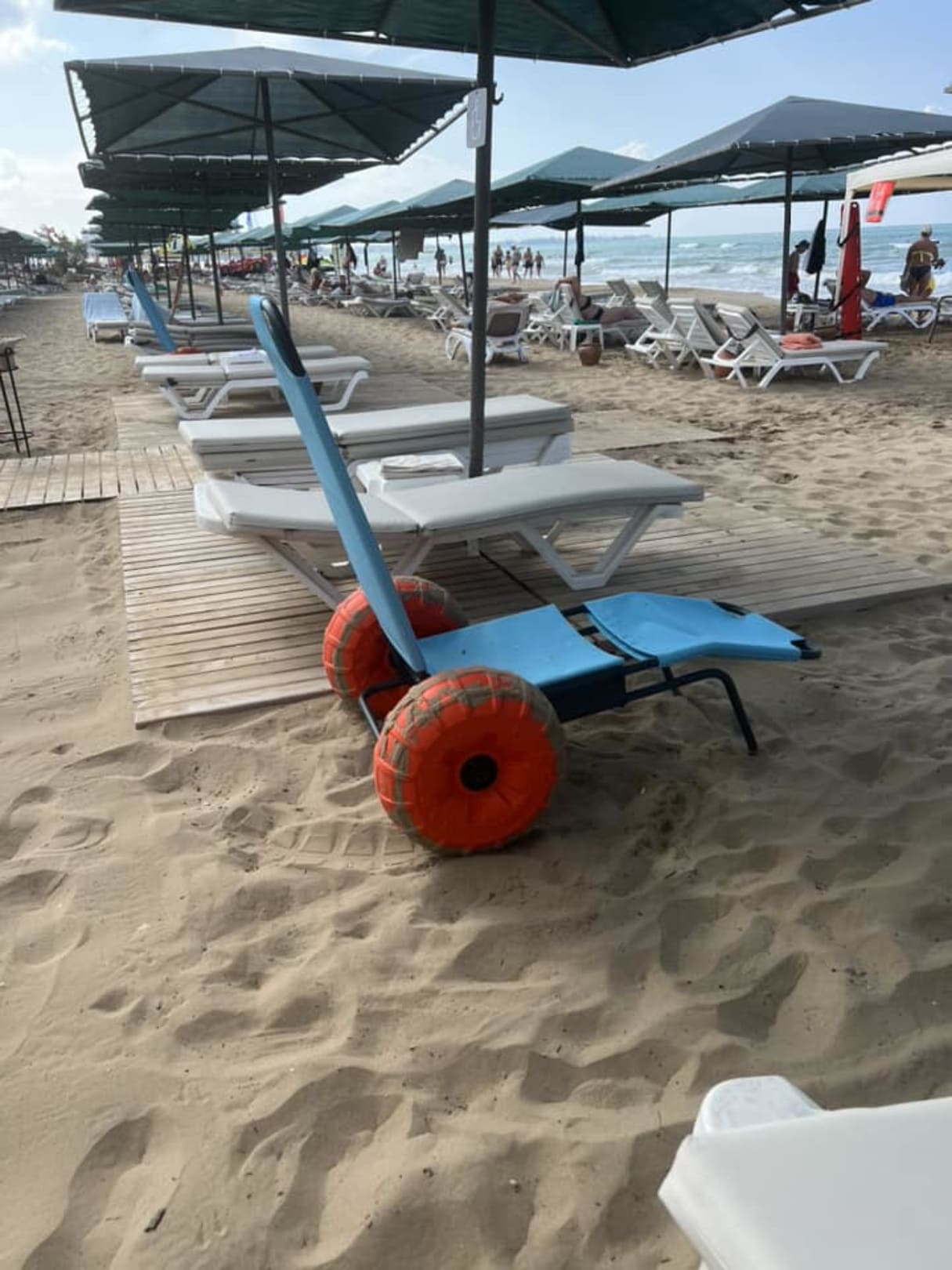 Dieses Gefährt besitzt das Hotel Yetkin noch nicht, wäre aber toll, wenn es solch ein Gefährt hätte, damit auch Menschen mit Handicap ins Wasser könnten