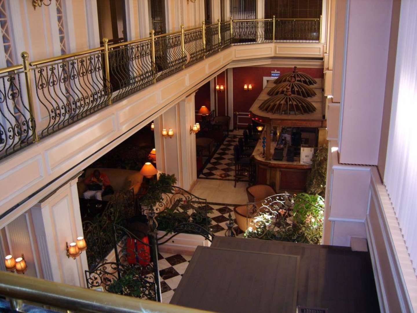 Blick von der Ballustrade in die Lobby