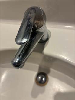Wasserhahn, eckelhaft, voll verdreckt bei Ankunft