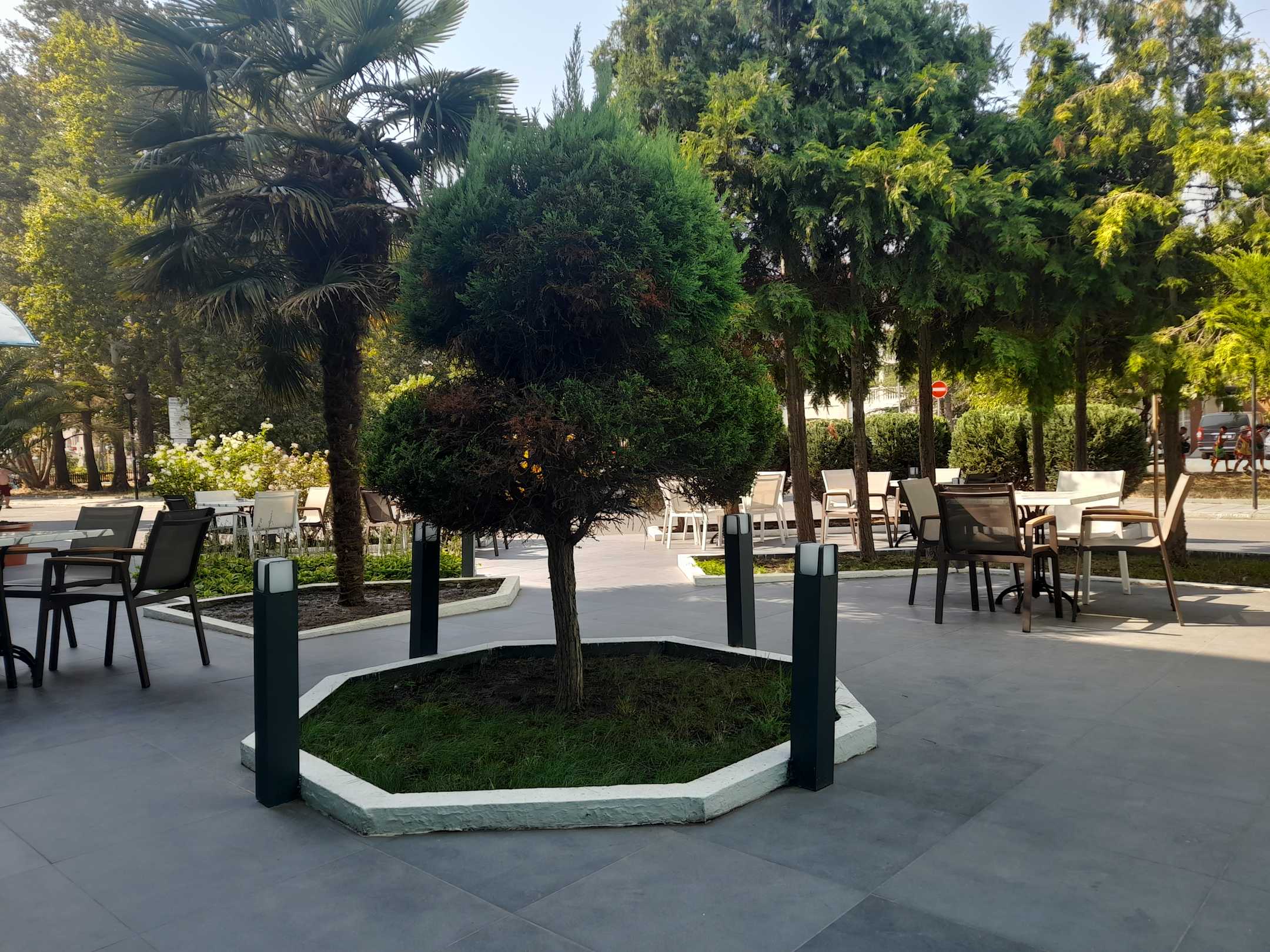 Sitzgelegenheiten vor dem Eingang
