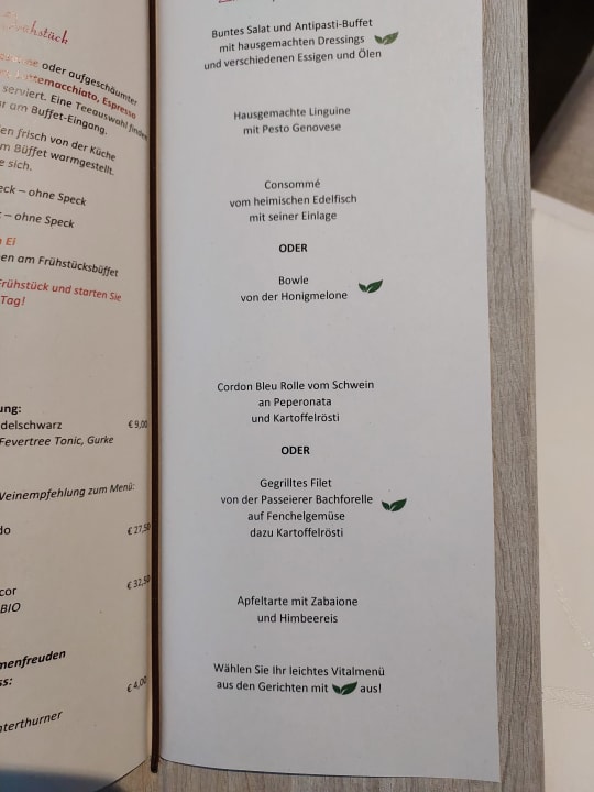 Speisekarte zur Wahl des Abendmenüs
