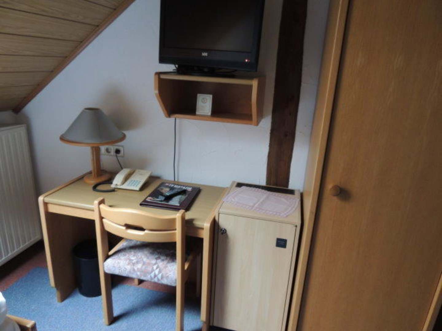Schreibtisch, TV und Schrank