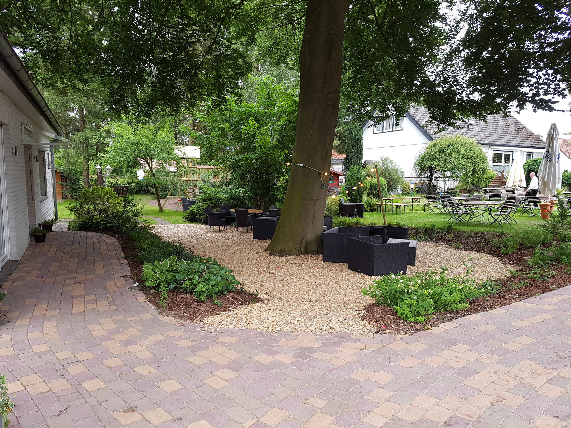 Sitzen unter Bäumen