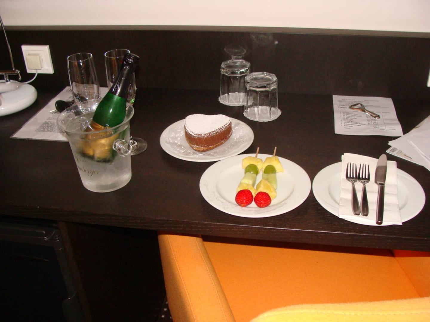 Nicht nur das Bett war super gerichtet auch erhielten wir kurze Zeit später all die Dinge die auf dem Bild zu sehen sind. So macht ein Aufenthalt Spaß. Das Aufenthaltspaket war eine tolle Überraschung.