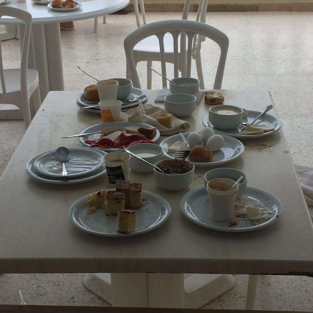 Das wurde bei den Russen weggeworfen,das war für 2 Personen,es wurde unheimlich viel geholt und wie man sieht wurde der Rest wegeworfen dem Personal fielen die Augen runter.