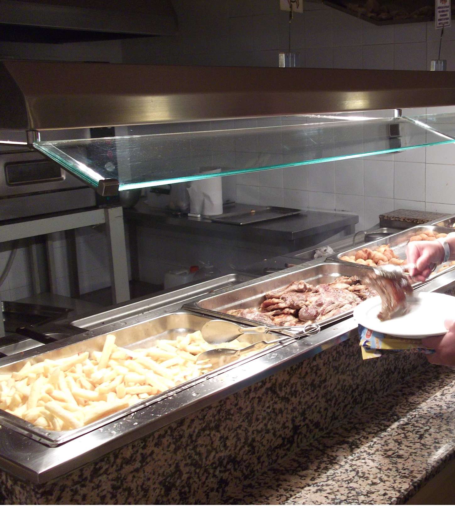 Abends: Pommes, Speck, Pizza