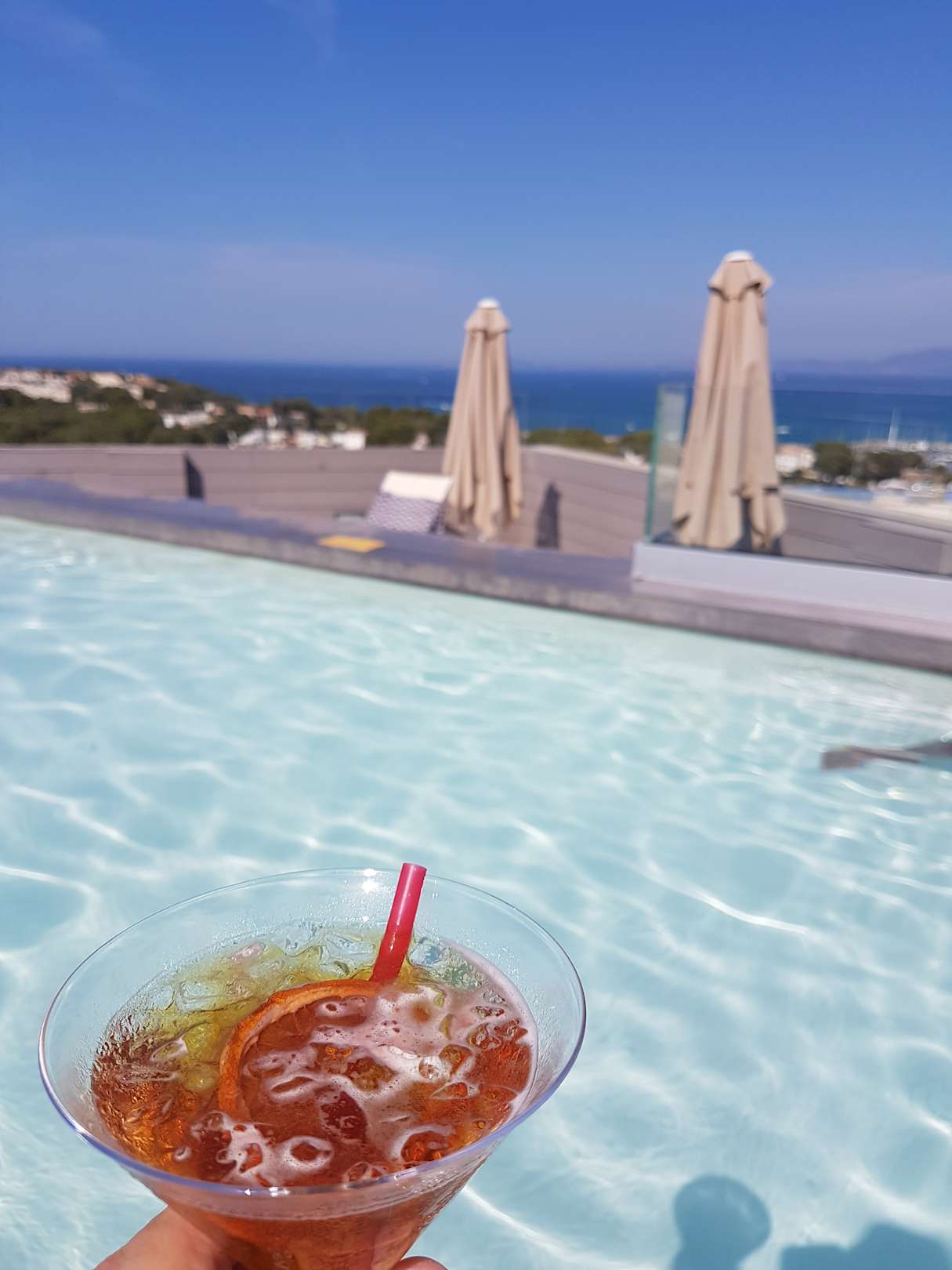 Skypool mit Cocktail von der Bar.