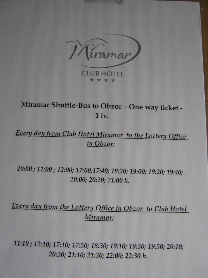 Der Fahrplan vom Hotel-Shuttlebus