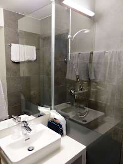 Waschtisch mit Duschwand
