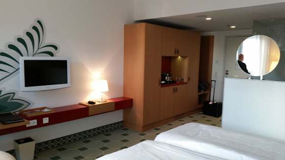 Blick von der Fensterseite Richtung Zimmertür/Bad