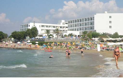Hotel vom Strand ausDas Bild wurde aus der gleichen Position wie das Prospektbild im alltours gemacht