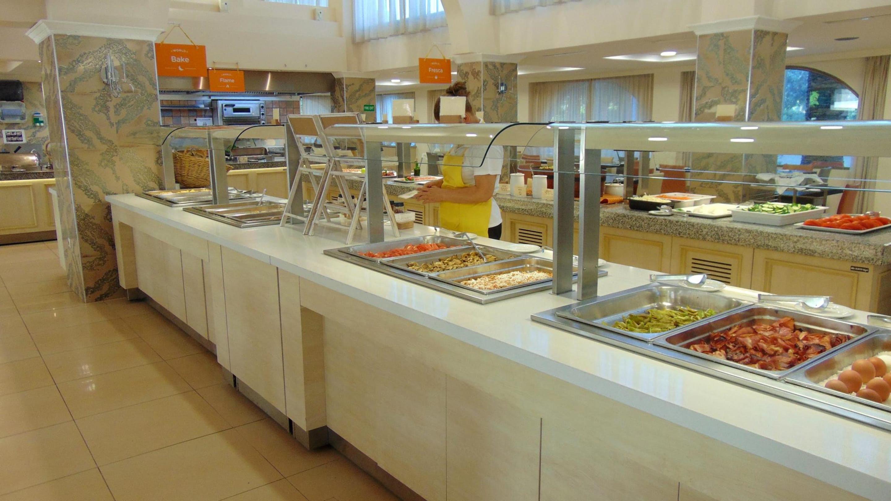 Hotelrestaurant Auswahl an Produkten am Frühstücksbuffet.