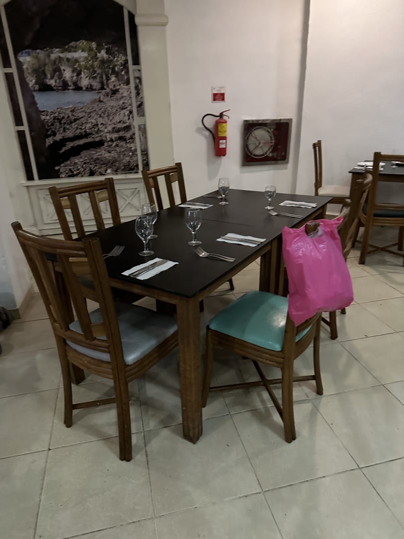 Tische werden mit Beutels und Sachen blockiert