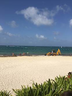 Dort wird das Seegras entfernt,täglich von 6Uhr bis teilweise bis 22Uhr. Kommt auf die Menge an